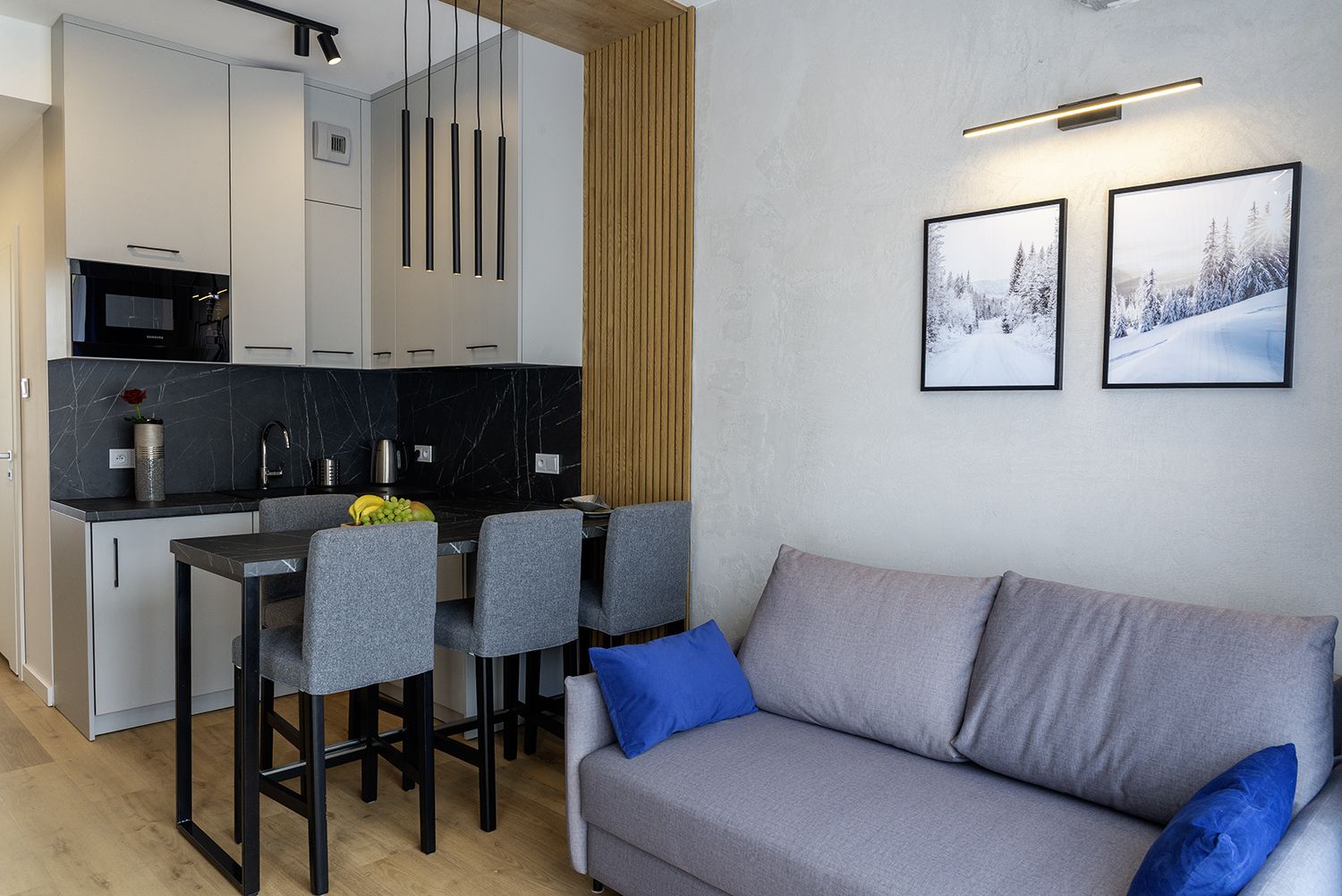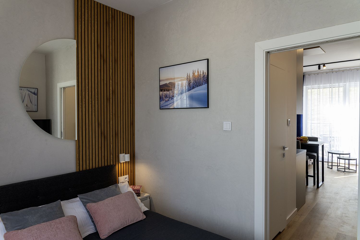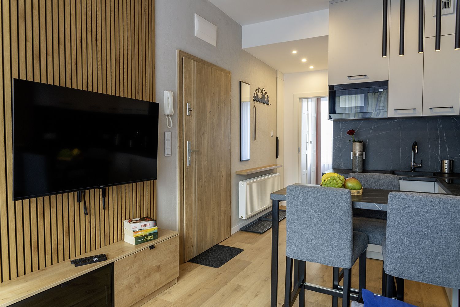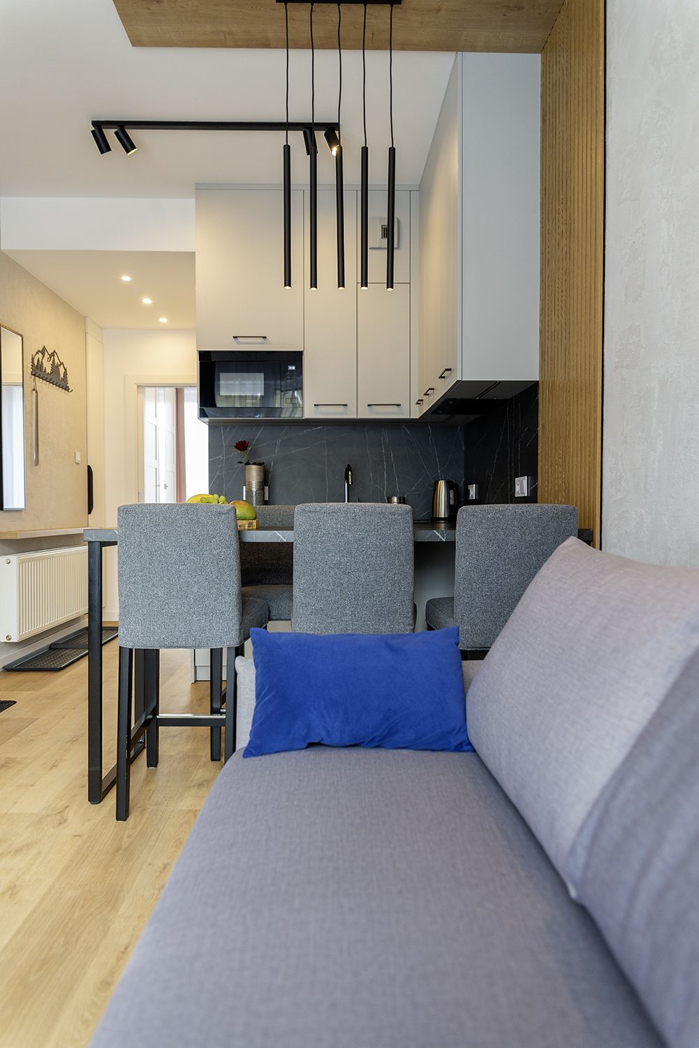 Apartament Family Time to wyjątkowa propozycja dla osób szukających komfortowego i stylowego miejsca do wypoczynku w sercu Beskidów. Zlokalizowany u podnóża stoku Siglany, co czyni go idealnym punktem wyjścia zarówno do zimowych sportów, jak i letnich wędrówek. Wnętrze apartamentu zostało zaprojektowane z wykorzystaniem nowoczesnego designu z dbałością o każdy szczegół. Znajdziemy w nim salon z klimatyzacją i wyjściem na taras, stół dla 4 osób, rozkładaną sofę oraz TV. W pełni wyposażona kuchnia i elegancka łazienka z prysznicem gwarantują wygodę i komfort użytkowania. Apartament posiada jedną samodzielną sypialnię z łożem małżeńskim. Łącznie 4 miejsca noclegowe.