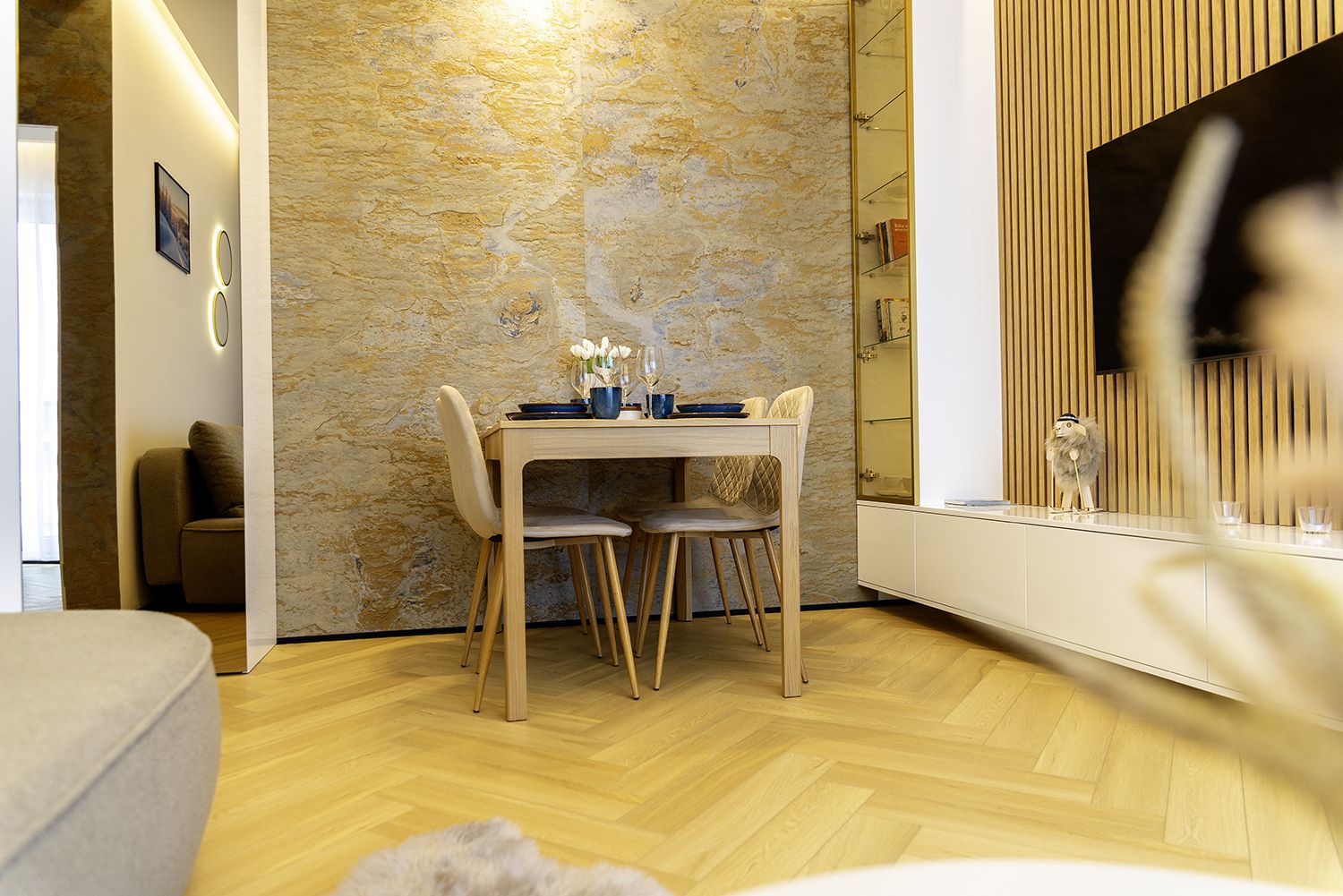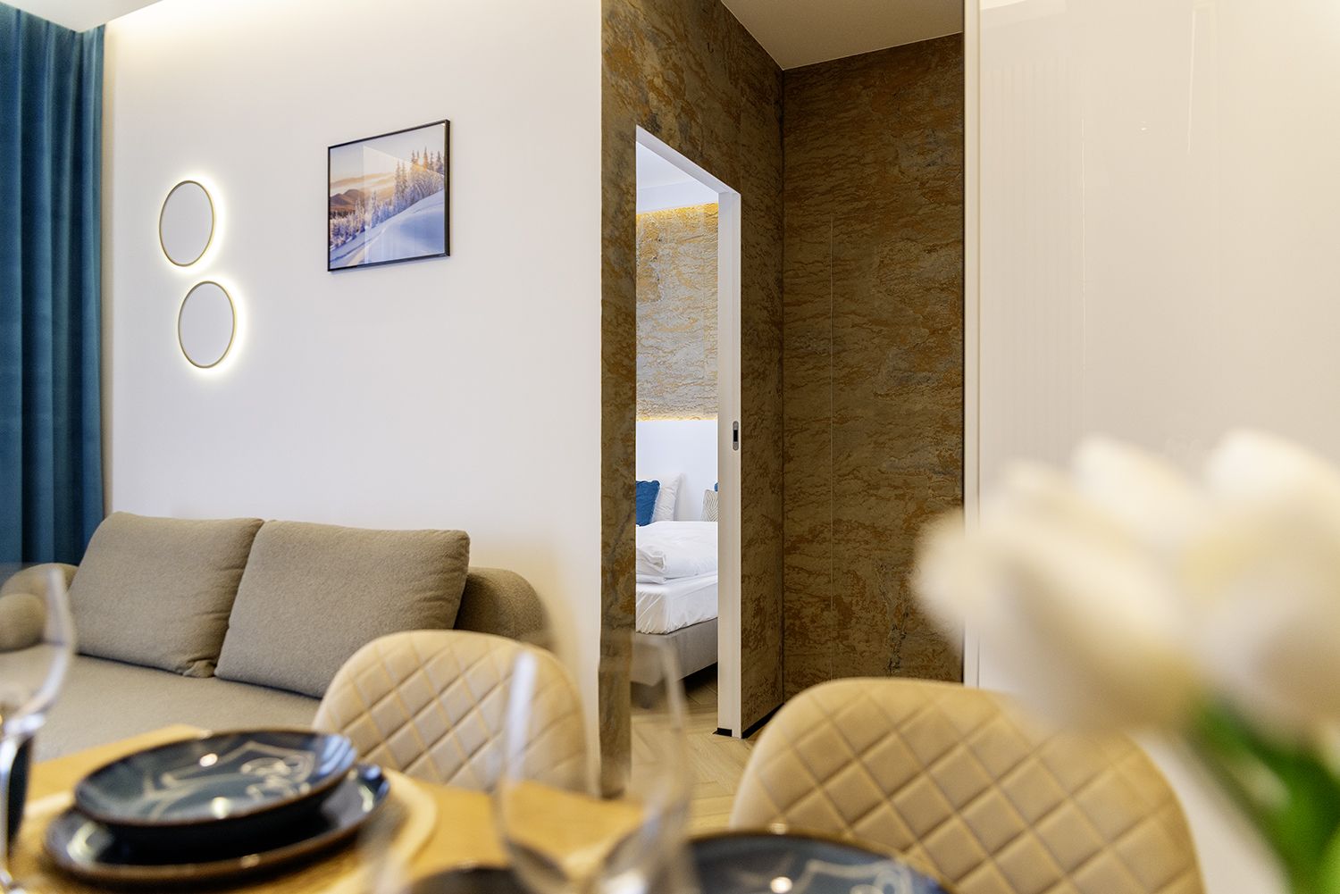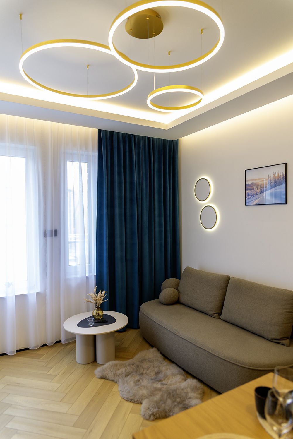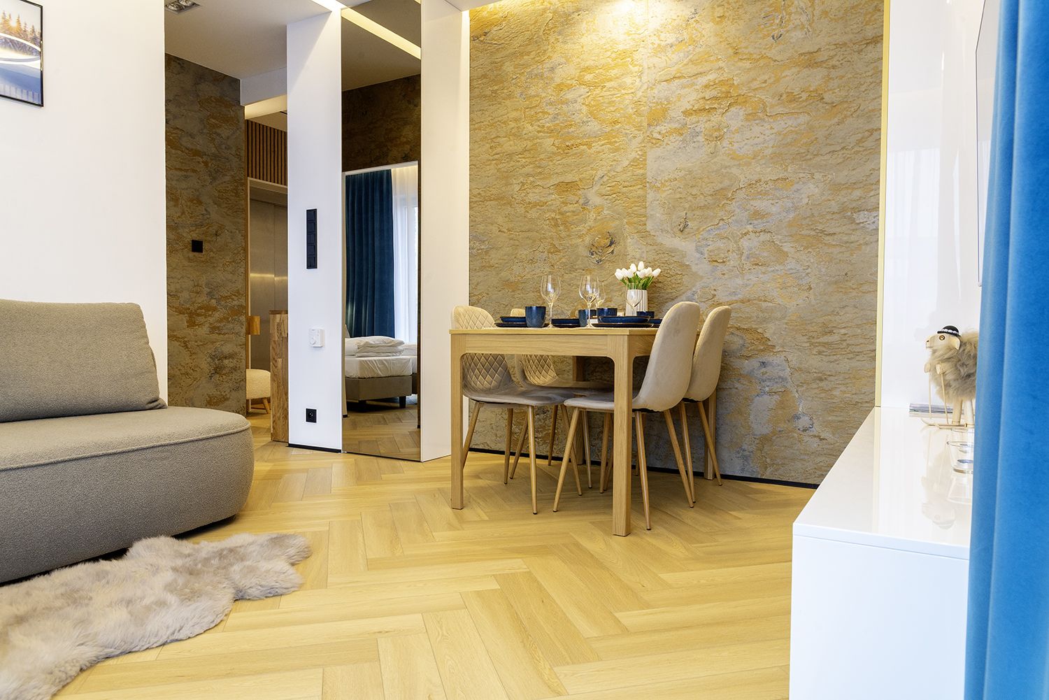Apartament Ski & View to wyjątkowa propozycja dla osób szukających komfortowego i stylowego miejsca do wypoczynku w sercu Beskidów. Zlokalizowany u podnóża stoku Siglany, co czyni go idealnym punktem wyjścia zarówno do zimowych sportów, jak i letnich wędrówek. Wnętrze apartamentu zostało zaprojektowane z wykorzystaniem nowoczesnego designu z dbałością o każdy szczegół. Znajdziemy w nim przestronny salon z wyjściem na taras, stół dla 4 osób, rozkładaną sofę oraz TV. W pełni wyposażona kuchnia i elegancka łazienka z prysznicem gwarantują wygodę i komfort użytkowania, a zastosowane materiały wysokiej jakości – drewno, kamień czy szkło – dodają wnętrzu ciepła i elegancji. Apartament posiada jedną samodzielną sypialnię z dwoma pojedynczymi łóżkami z funkcją łączenia. Apartament posiada przypisaną komórkę lokatorską w garażu budynku, którą wykorzystywać można jako przechowalnię sprzętu sportowego. Łącznie 4 miejsca noclegowe.